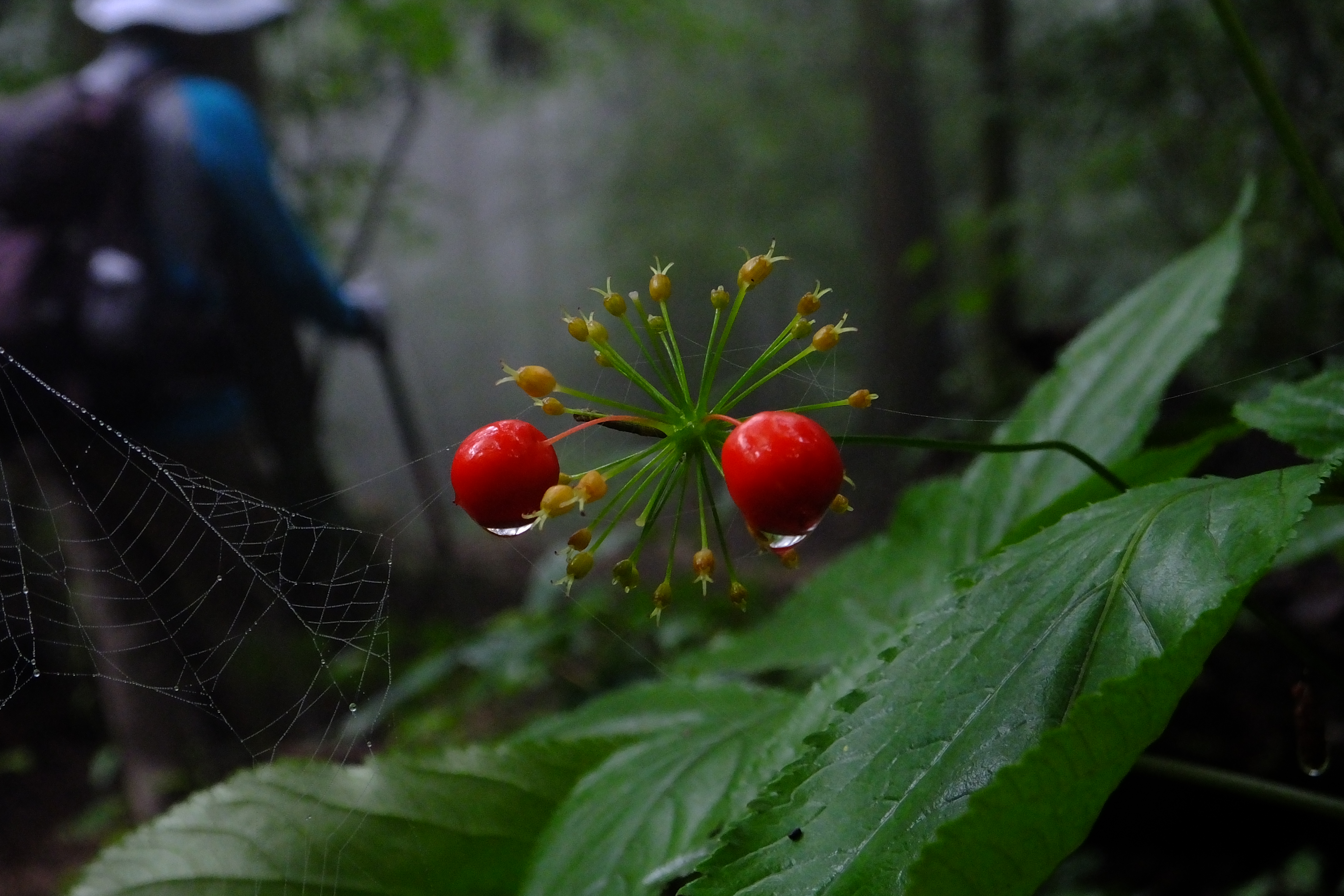 山頂部は霧の中でした 薄暗い登山道脇に咲いていました トチバニンジン